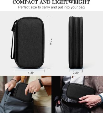 FYY Travel Cable Organizer Pouch Electronic Accessories Carry Case Portable Waterproof Double Layers All-in-One Storage Bag for Cord, Charger, Phone, Earphone Black