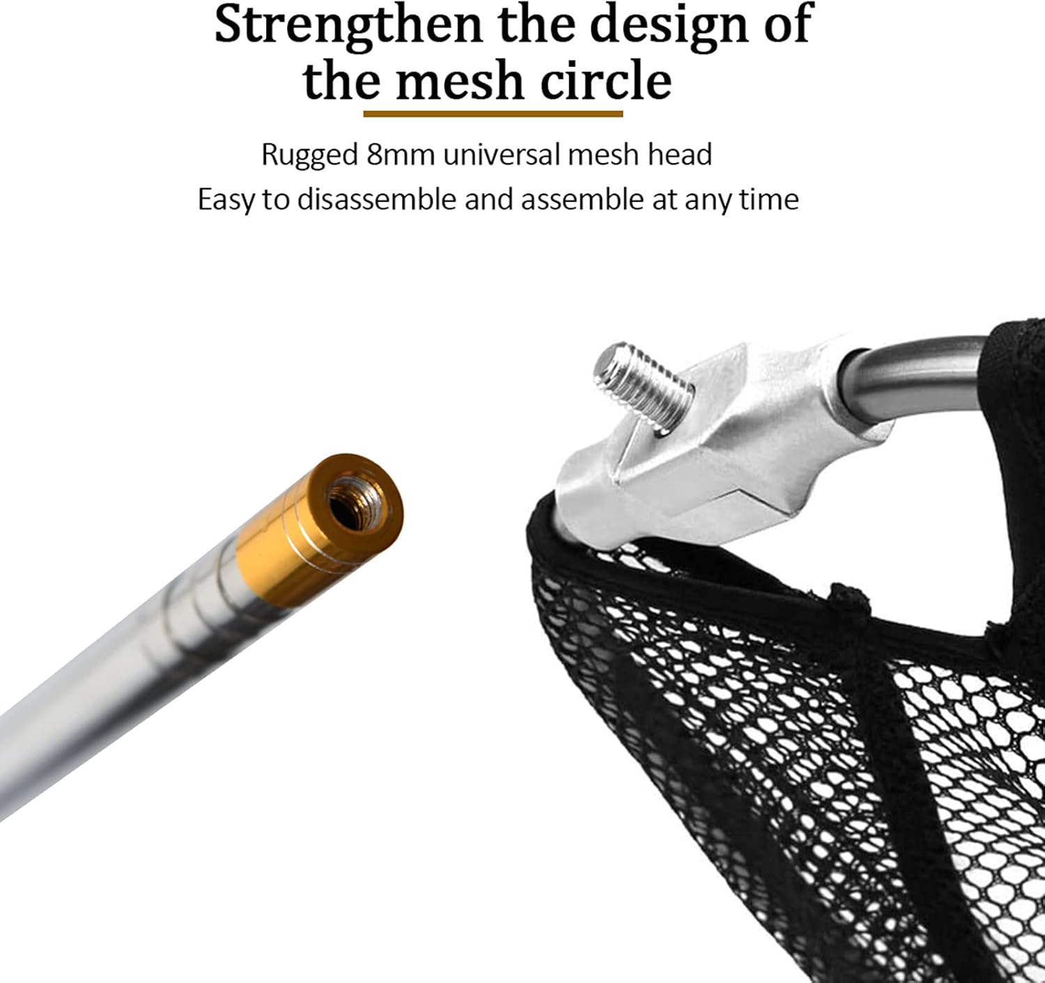 The net itself is made from rubber-coated nylon mesh, offering a soft and fish-friendly surface that helps prevent damage to the fish’s scales and fins during the landing process. The fine mesh design also ensures easy catch and release, making it ideal for various types of fishing including Steelhead, Salmon, Fly, Kayak, Catfish, Bass, Trout, Shrimp, and Crab.