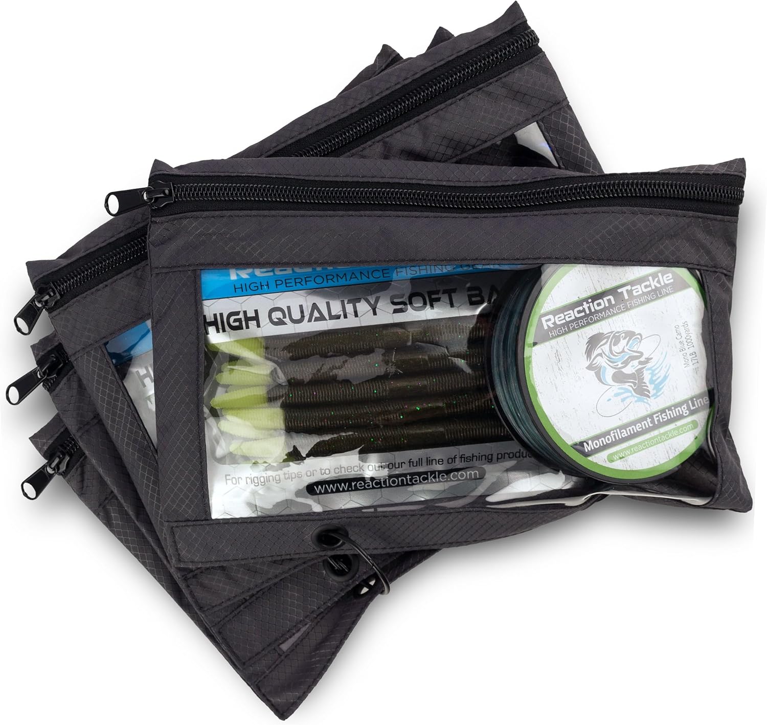 Reaction Tackle Deluxe Bait Binder – Water-Resistant Soft Plastic Bait Storage Bag, Saltwater & Freshwater Fishing Tackle Organizer, Lure Bag for Bass, Kayak, and Boat Fishing